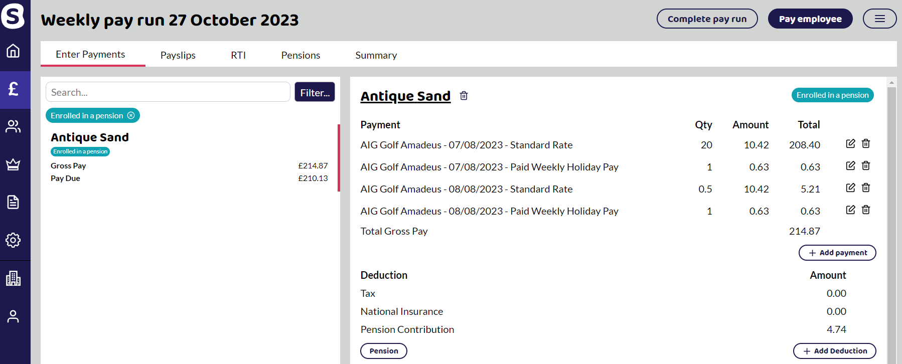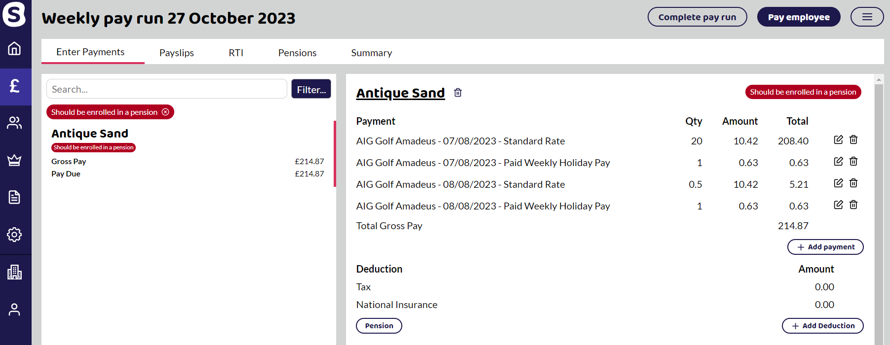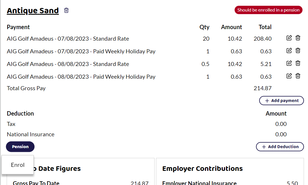 The employee is now enrolled into the pension scheme and will be included in the pension file contributions. The employee tag will update to Enrolled.