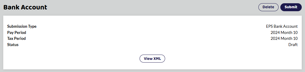 Quickly create a bank account EPS by going to HMRC -> RTI Submissions. Click the +Create button in the top right hand corner and you'll see Bank Account EPS is available.