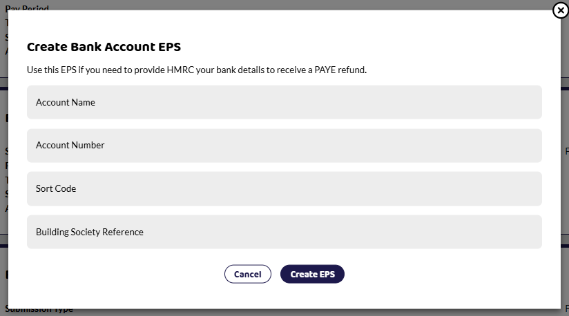 HMRC may ask you to send your bank details to receive a refund from them. HMRC will expect you to send this through an EPS.