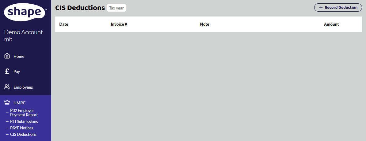 Only limited companies can claim back the CIS deductions through their company's monthly payroll. With Shape, you can input your invoices and offset this against your monthly PAYE liability.