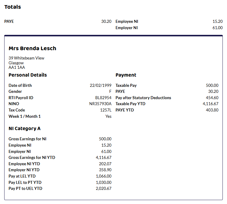 Here you can see that the extra £500 of taxable pay and NI has been submitted as well as the additional Tax and Ni. This is because HMRC records already have a record of the £700 and only the difference needs to be submitted. The Year to Date figures have been updated.