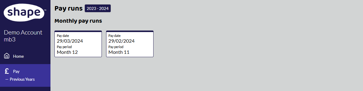 Here all your complete pay runs for that tax year will show. This company runs two monthly pay runs.