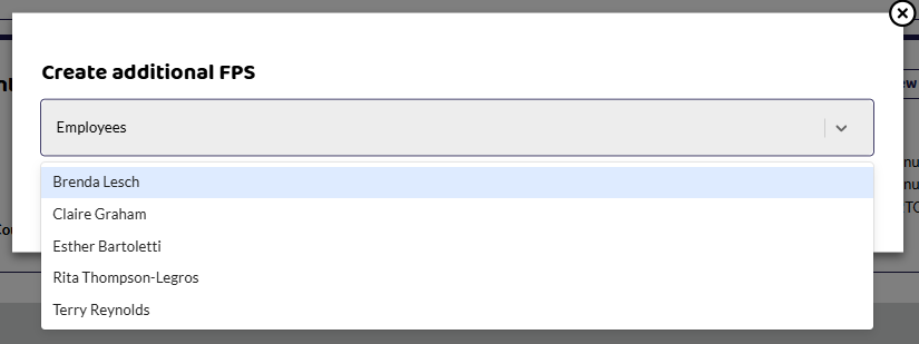 You will be given an option in the drop down to add the employee who you need to send a correction for. In this case, it is Culture Culvert. If you had a few employees to amend, you can add them all here to send as one FPS correction.