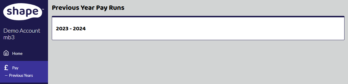 If you want to edit a pay run for the previous tax year, select Pay -> Previous Years and select the correct tax year.