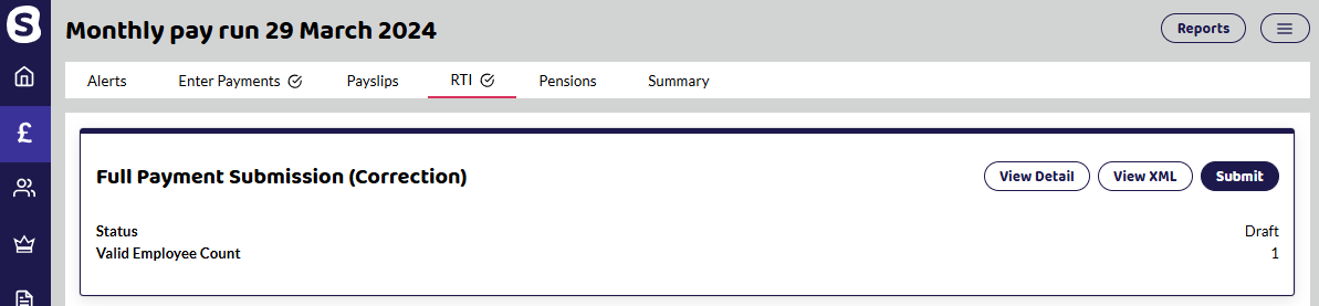 As with all FPS Submissions, you can either View Detail or View XML for a breakdown of what is being submitted to HMRC.