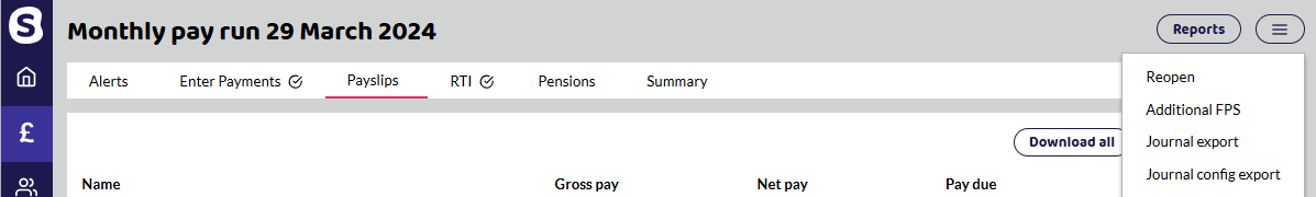Select the pay run you wish to edit. We are going to edit the Monthly pay run on 29 March 2024. Select the pay run, top-right-hand corner, click button -> select Reopen.