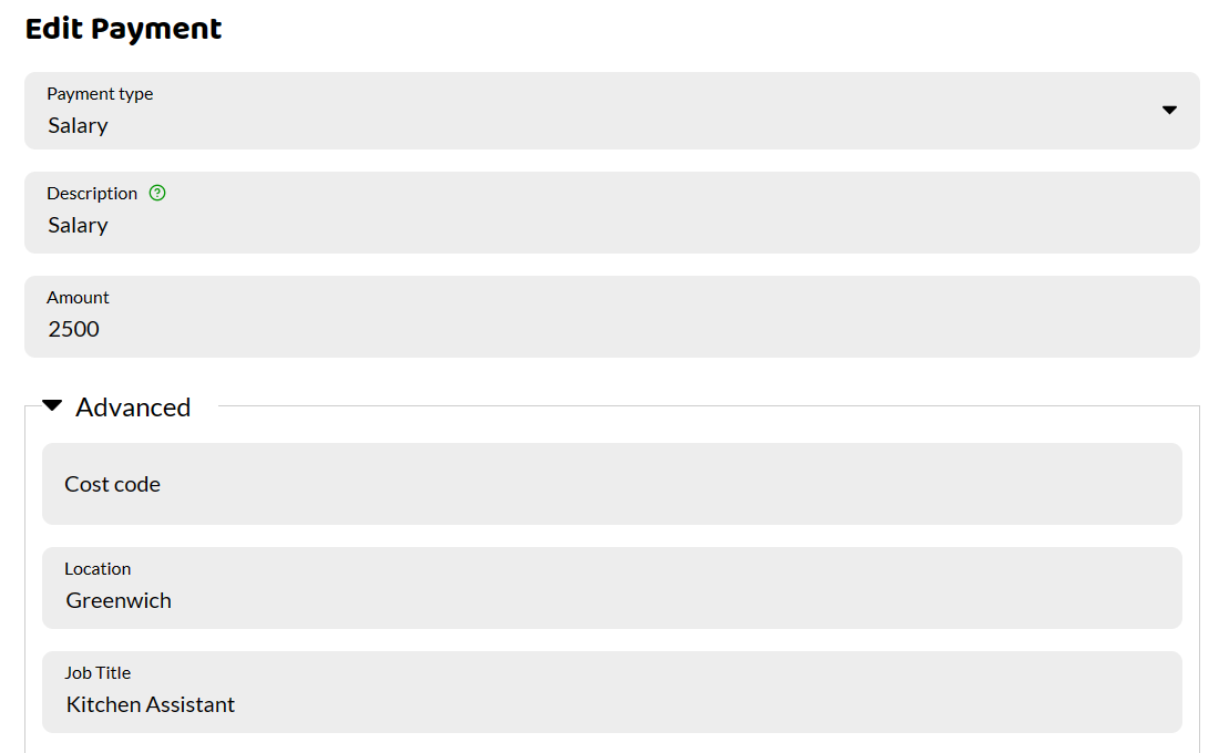 Please note, if the pay run was already open when you made the entries into the employee's page, these will not pull through to the payments that are already present within the pay run unless you make a change and save them. If you made the entries and then opened the pay run you will see that the fields are already populated with the employee profile's entries under each payment that exists already.