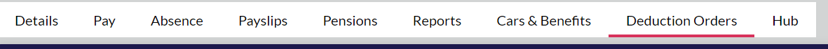Within the employee profile in Shape is a tab named "Deduction Orders", this is where to input any deduction order instructions you have received for an individual.