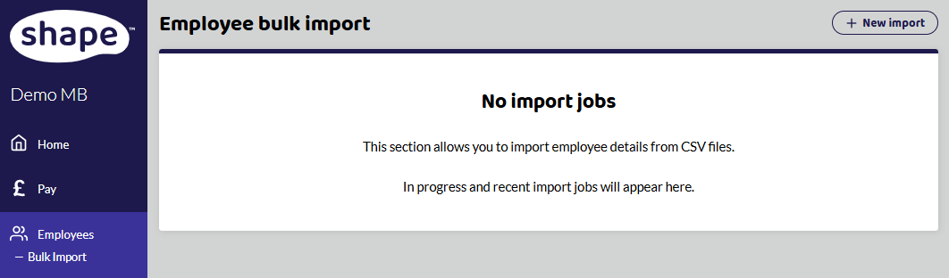 You can upload an Employee File to add information on the employees in bulk. For information on completing the csv, please see Shape Employee Import File Notes.