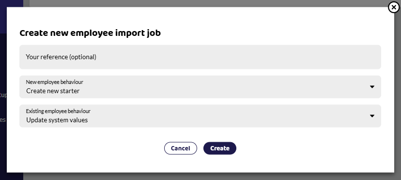 Once you have added a reference and chosen what you want the system to do with the file, select Create Import.