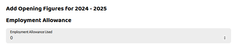 If you are eligible for the employment allowance, you may have already claimed some for the current tax year. Here you can enter how much allowance has already been used. This means that Shape won't allocate you more allowance than your company is entitled to for the tax year. Currently, for the 2023-24 tax year, the allowance is £5,000.