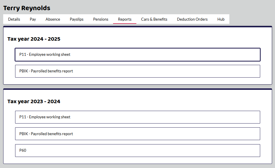 You will be able to see the P11 for previous tax years as well. Once the tax year has completed, the P60 will also be available here.