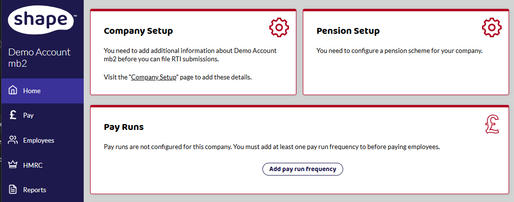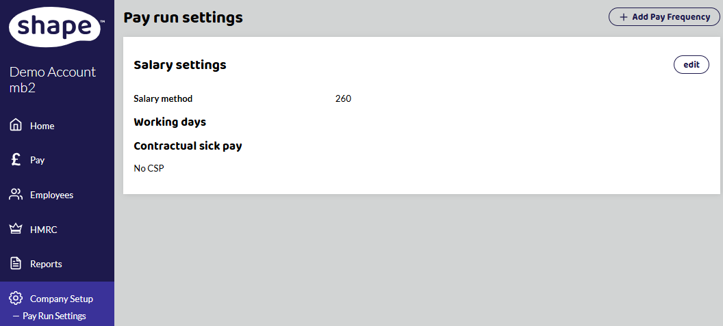 When you first set up your account with Shape Payroll, you will be asked to configure your pay run frequency. This is the date you make payments to your employees.