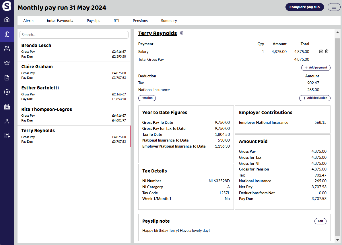 If the pay run has not been completed, you can download a PDF as a draft. See below for an example of our payslips.