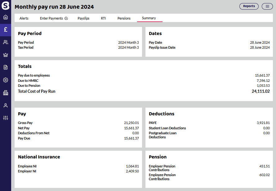 Every pay run has a summary page. This updates as employees and payments are entered.