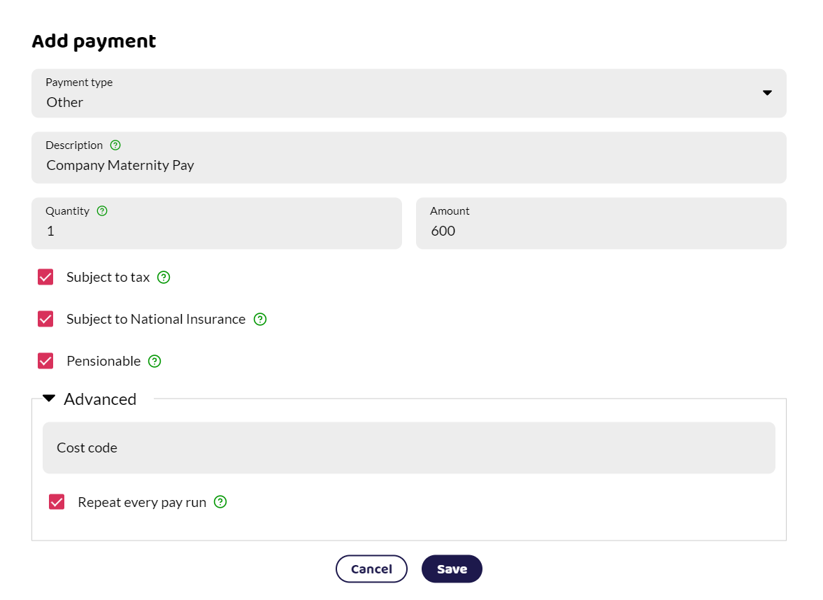 Employers can normally reclaim 92% of this but small employers may be eligible to claim back 103%. If you are eligible, you can select this in tax settings. For further guidance on reclaiming statutory payments and to check your eligibility, please see the HMRC guidance Recover Statutory Payments.